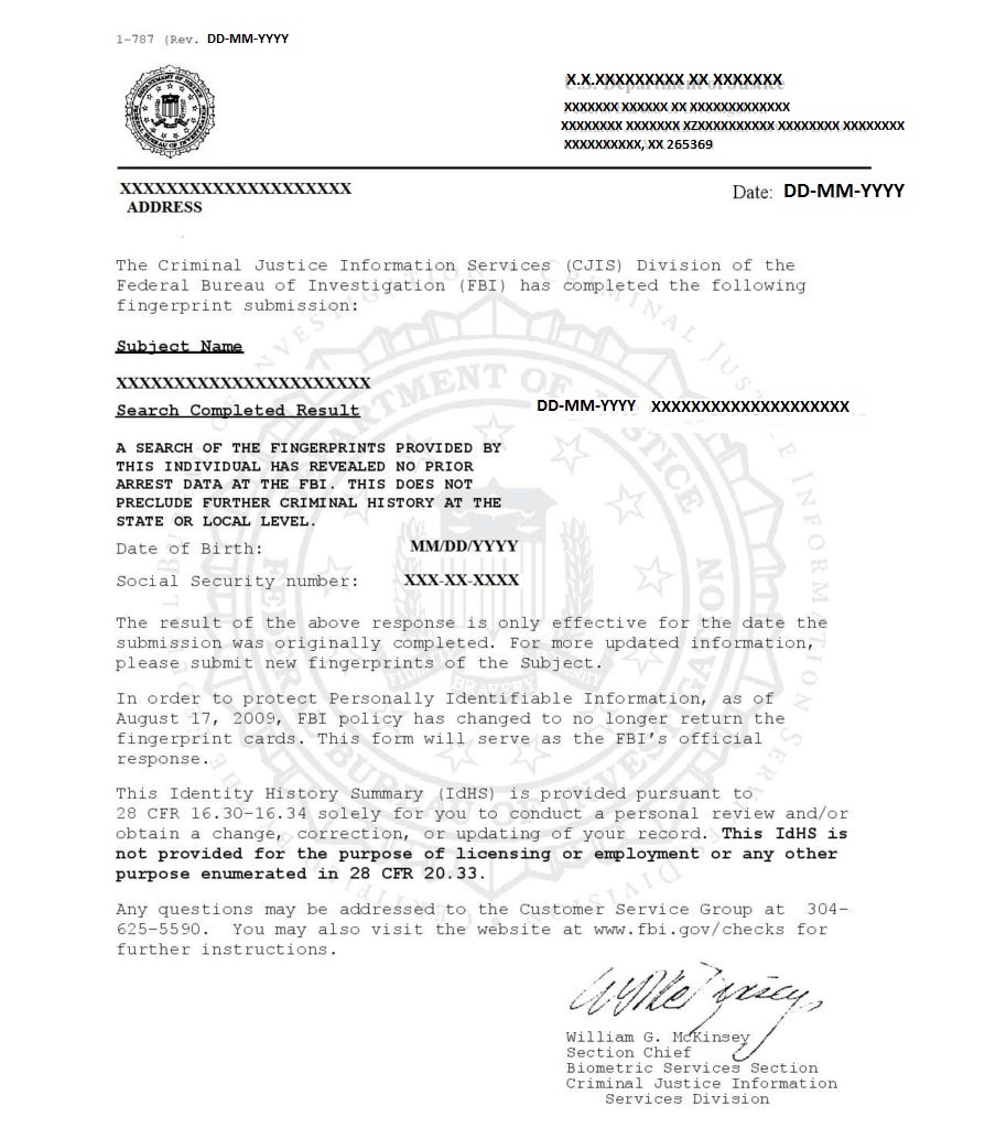 - Fingerprints on FBI FD 258 fingerprint card (will be done by us or fingerprint can be done by the individual and send it to our office);